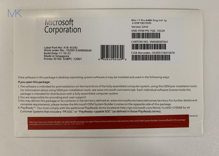 Microsoft-OEM Systeembouwer Wind оws 11 Professionele OEM OEI met 64 bits DVD Engelse 22H2
